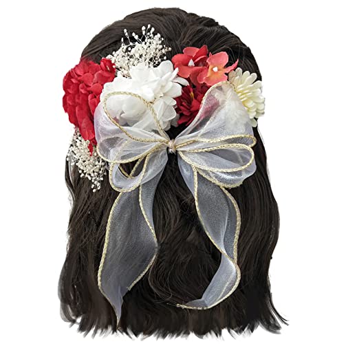 JZOON 9色展開 リボン 髪飾り ドライフラワー ダリア 造花飾り 和玉 赤 ヘアアクセサリー 成人式 水引 振袖 着物 卒業式 七五三 浴