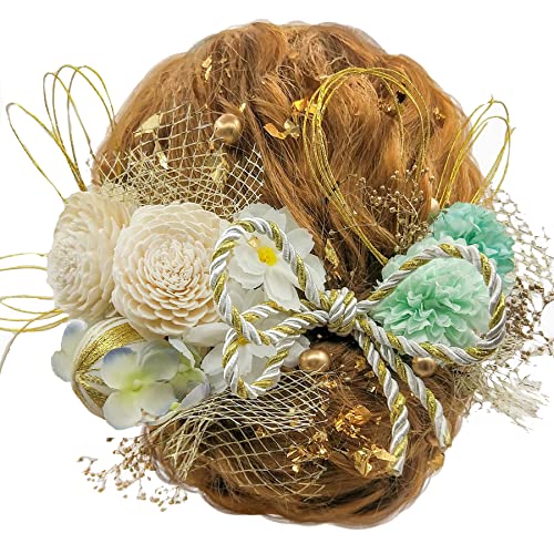JZOON 8色展開 ドライフラワー 髪飾り 金箔 ダリア 造花飾り 和玉 ヘアアクセサリー 成人式 水引 振袖 着物 卒業式 七五三 浴衣 袴