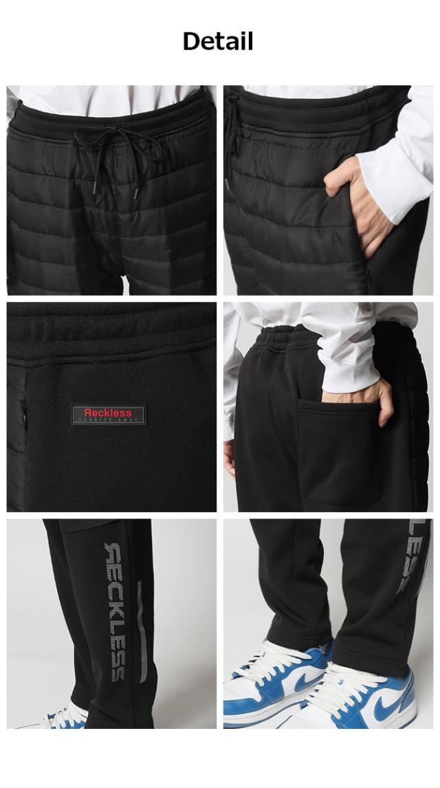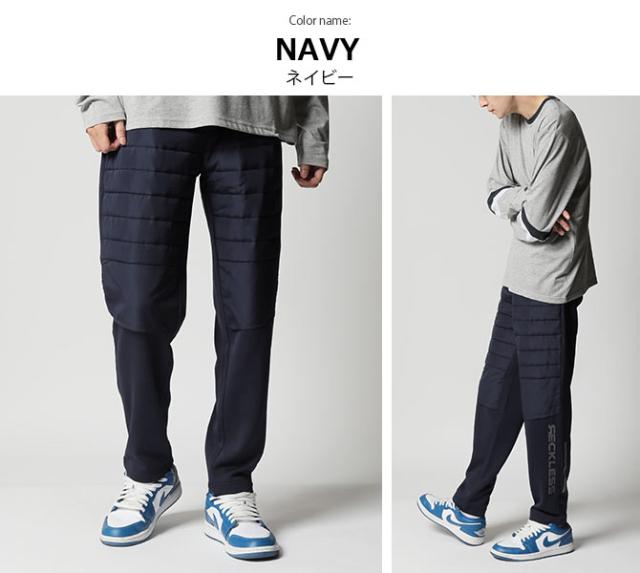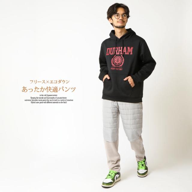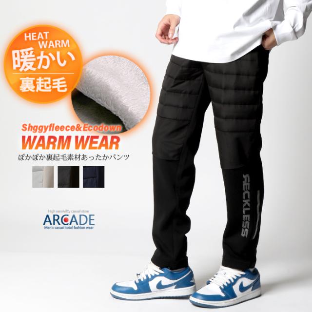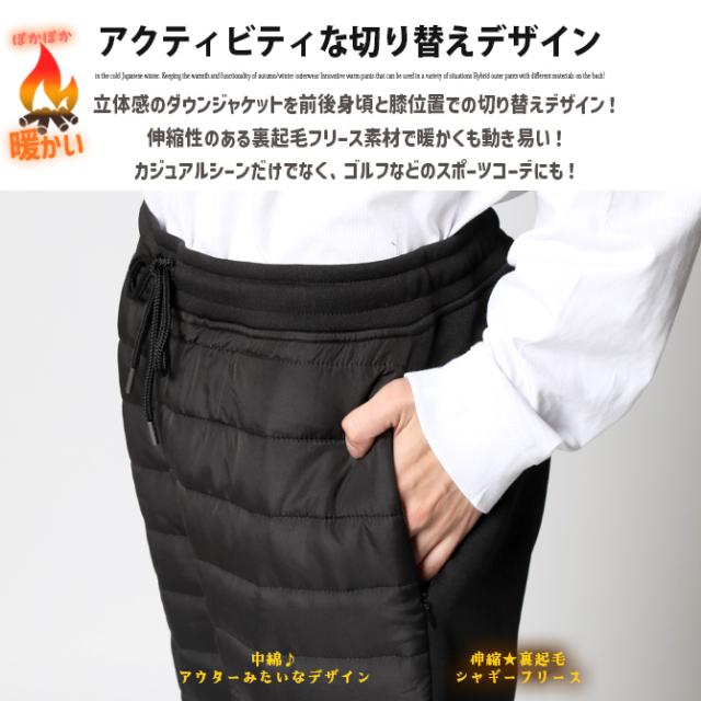 暖パン メンズ 裏シャギー 秋新作 フリース 中綿切り替えパテッドパンツ イージーパンツ ナイロンパンツ