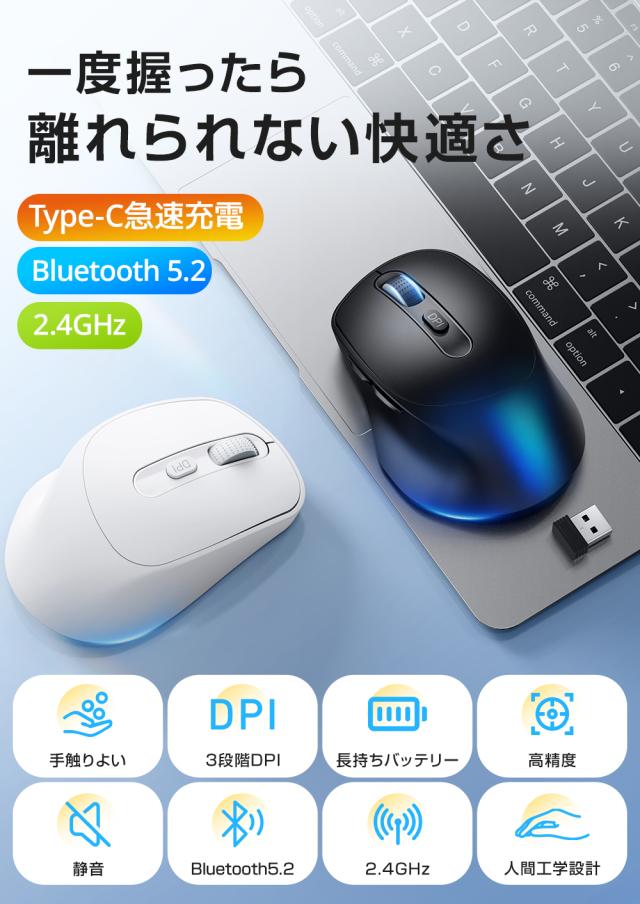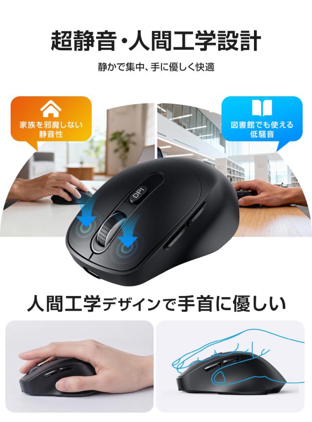 【静音クリック&Type-C充電式】 クリック音を抑えた静音設計で、