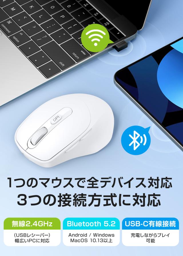 ワイヤレスマウス Bluetooth マウス 充電式 静音 無線 小型 超静音 高精度 ワイヤレス マウス 光学式 3段階DPIモード 6ボタン バッテリー内蔵 パソコンPC/iPad/Mac/Windows/Laptopに対応 運び便利 オフィス 旅行 出張 おしゃれ