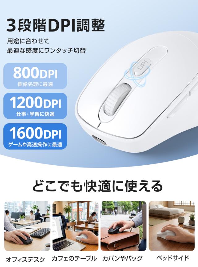 【3段階DPI切替】 800 / 1200 / 1600 DPIの3段階調整。