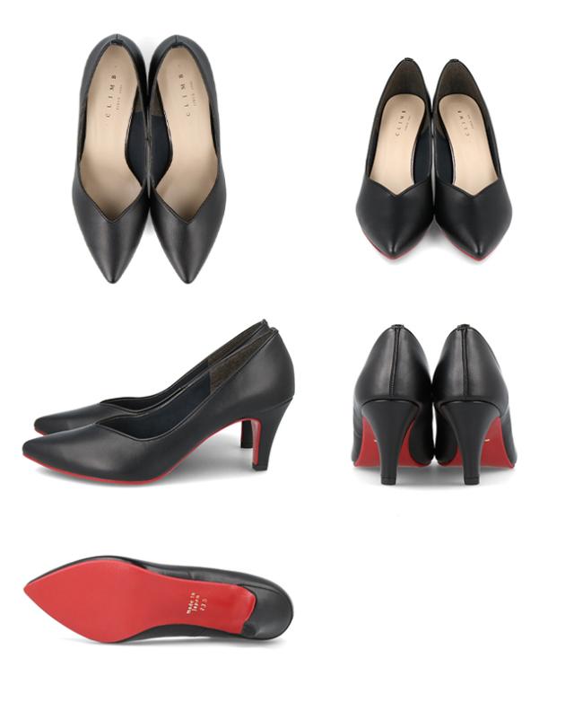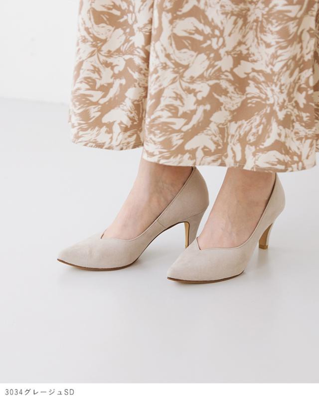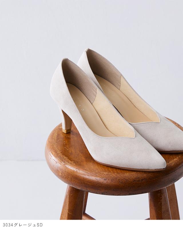 オフィスやオケージョンなどのフォーマルファッションに馴染む、洗練シルエットの日本製パンプス。
