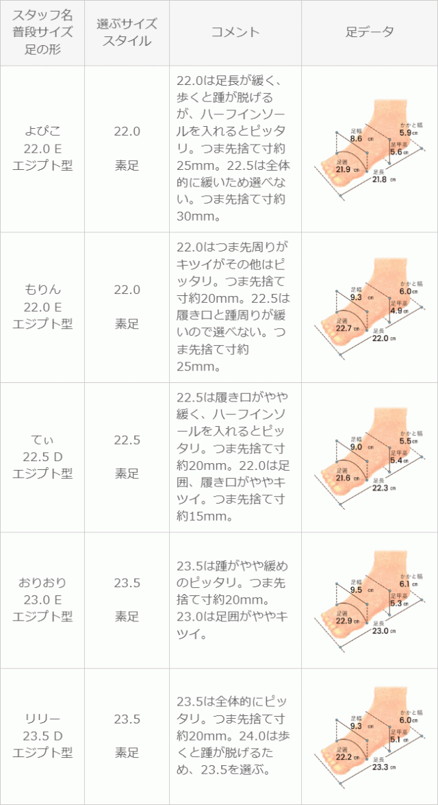 ※足の形には個人差があります。スタッフ試着感想は参考程度にお考え下さい。