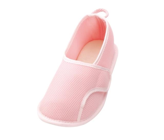 抗菌加工、防臭加工(中底のみ)・通気性のよいメッシュ素材。・素足でも気持ちよいパイル生地。かかとにループが付いていて履きやすい。底面には水がしみこみにくく、グリップ性に優れた素材を使用。