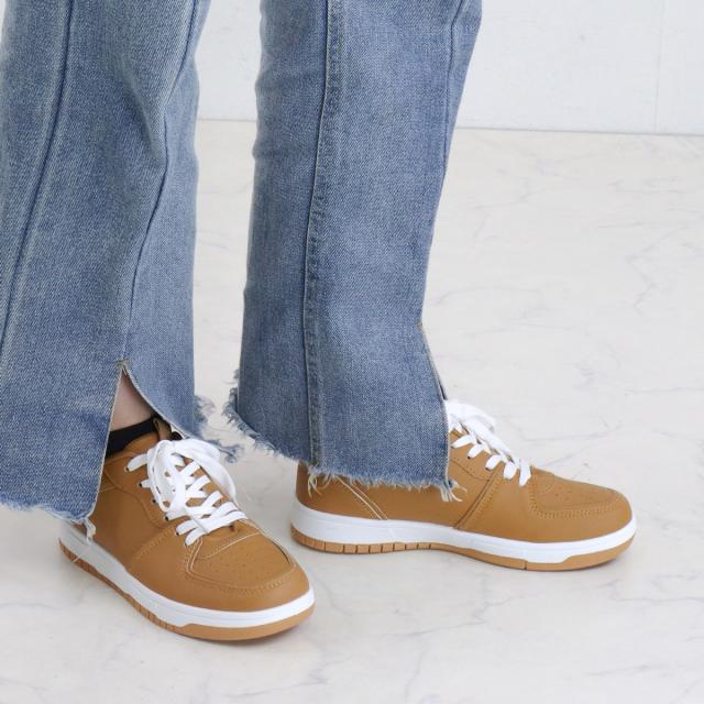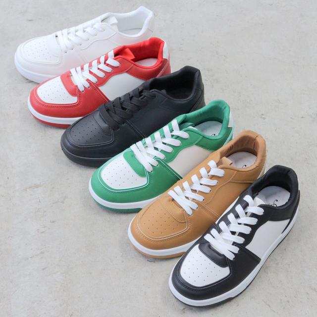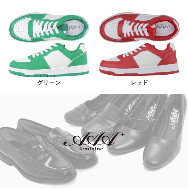 スニーカー レディース ローカット レースアップ 3cmヒール 合皮 ブラック グリーン レッド キャメル No.3401 22.5-25.5cm AAA+ Feminine