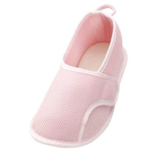抗菌加工、防臭加工(中底のみ)・通気性のよいメッシュ素材。・素足でも気持ちよいパイル生地。かかとにループが付いていて履きやすい。底面には水がしみこみにくく、グリップ性に優れた素材を使用。