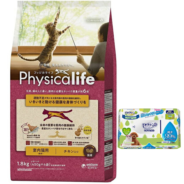 フィジカライフ (Physicalife) 室内猫用 チキン入り 1.8kg【犬想いオリジナルセット】【デオクリーン付】