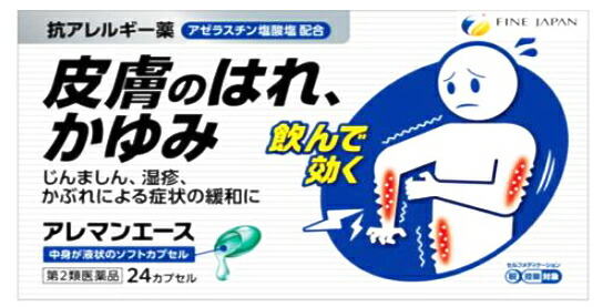 アレマンエースは「花粉,ハウスダスト(室内塵)」などによる「くしゃみ,鼻みず,鼻づまり」のような鼻のアレルギー症状及び「じんましん,湿疹・かぶれ」による「皮膚のはれ,かゆみ」などの不快な症状をやわらげます。