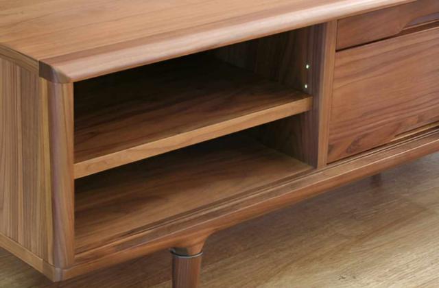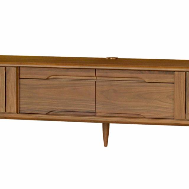 ウォールナット突板を使用したテレビボードです。重厚感の中に優しいディティールを忍ばせた雰囲気で、どんなお部屋にも馴染んでくれます。飽きの来ない自然の質感を活かしたデザインで、永くお使いいただけます。