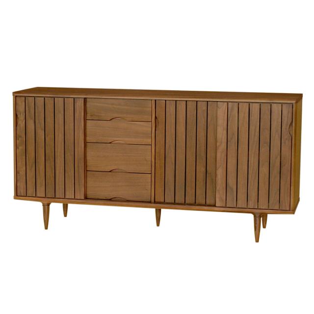 サイドボード 縦格子デザイン ウォールナット突板 KISSUI 幅163cm ( 開梱設置 キッスイ 木製 棚 ラック 収納 家具 完成品 無垢 食器棚 リビング ウォルナット 引き出し 可動棚 )