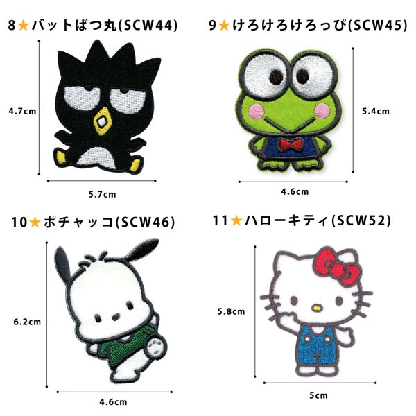 ワッペンサンリオ ワッペン キャラクター 刺繍 アイロンワッペン キティ ハンギョドン ペックル ポチャッコ マイメロ クロミ シナモロール ポムポムプリン キキララ けろっぴ タキシードサム ばつ丸 ステッカー シール かわいい 正規品 入園 入学 わっぺん アップリケ グッズ