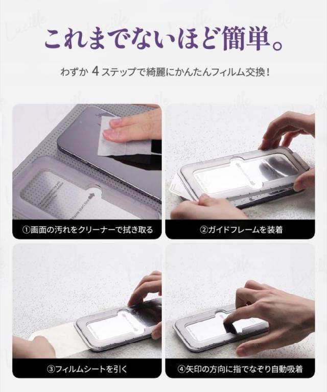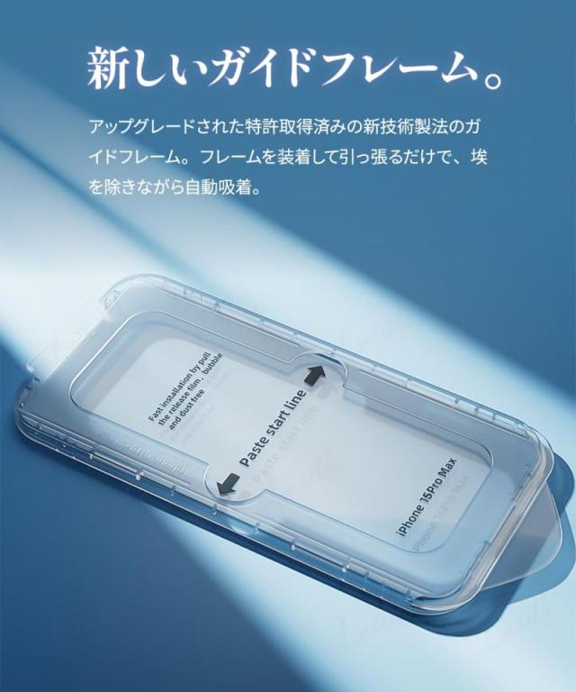 ☆新製法のガイドフレーム付き。簡単で角まできれいに貼れるのはもちろん、装着して引っ張るだけで埃まで除去し、気泡レスの吸着。お子さんやご年配など手先が不器用な方でもご安心ください。