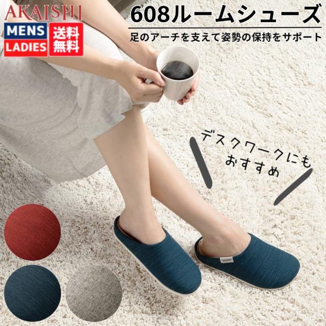 アカイシ AKAISHI ルームシューズ メンズ レディース サンダル ルームシューズ 衝撃吸収 アーチサポート O脚 カジュアル サンダル シューズ 室内履き リラックスタイム オフィス 外販防止 むくみ 偏平足 リラックスシューズ AF-608-016