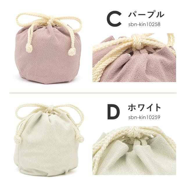七五三 3歳 巾着 子供 キッズ 女児 女の子 浴衣 シンプル 無地 縮緬 ベージュ ピンク 薄紫 白 こども メール便 送料無料