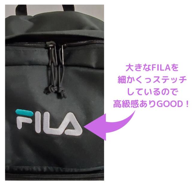 ●ボディ上部のロゴFILA刺繍がおしゃれ感をだしています。