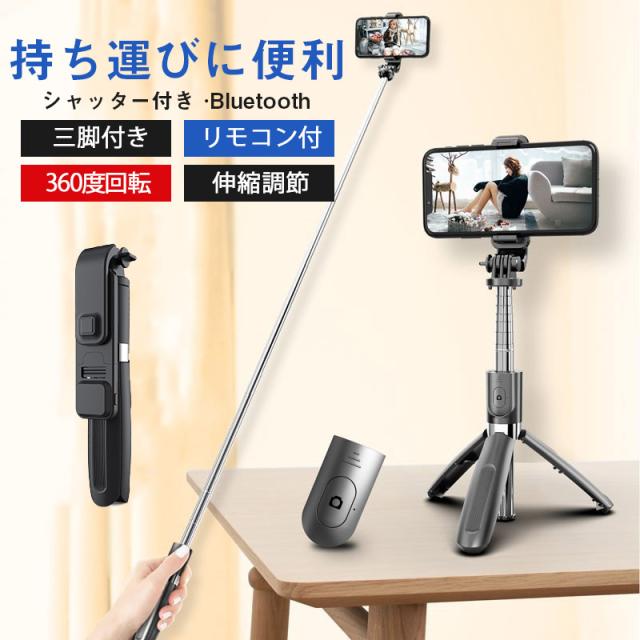自撮り棒 三脚付き セルカ棒 Bluetooth リモコン付 スマホ 自撮り 三脚スタンド 長い ワイヤレス 伸縮調節 360度回転 シャッター付き