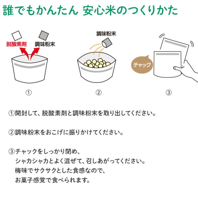 ◆原材料 [おこげ]もち米(国産)、植物油、食塩、酸化防止剤(ビタミンE) [梅調味粉末]梅干しペースト、調味しそ、デキストリン、食塩、酸味料