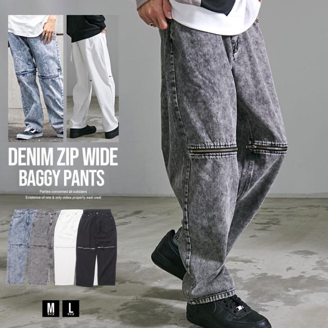 デニムパンツ メンズ ブランド おしゃれ 膝ZIP ワイドパンツ カジュアル 大きいサイズ バギーパンツ ケミカルウォッシュ加工 ストリート ストリート系 春 夏 秋 冬 秋冬 ブルー ブラック ホワイト 青 黒 白 CavariA キャバリア 大人 ファッション 男性 男 父の日 父の日ギフト 父の日プレゼント 20代 30代 40代 メンズファッション 東京 プレゼント 誕生日 記念日 贈り物 ギフト配送について