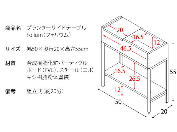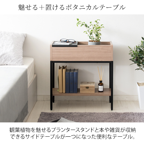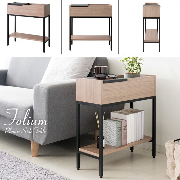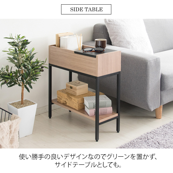 お気に入りの観葉植物を飾りながら飲み物や本が置けるプランターサイドテーブル。