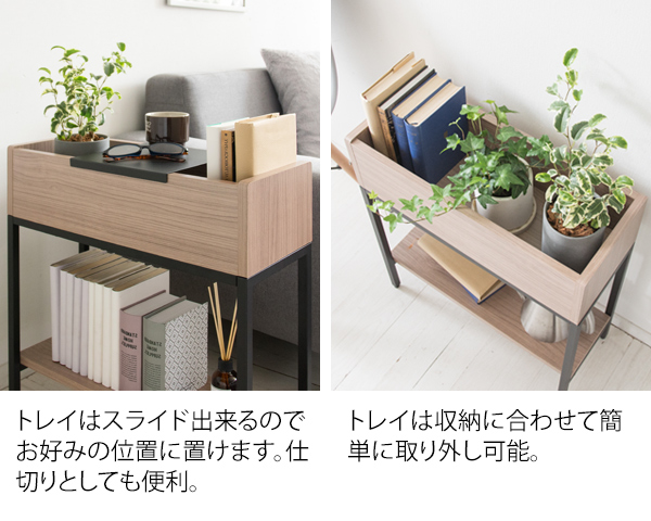 飲み物やリモコンがサッと置けるトレイはお好きな位置にスライドしたり取り外しも可能です。