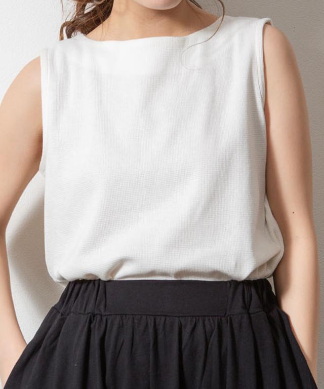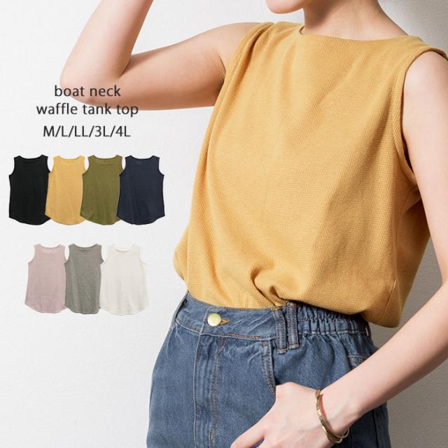 秋新作 大きいサイズ レディース ボートネックワッフルタンクトップ レディース 大きいサイズ M L LL 3L 4L 黒 白 グレー ネイビー カーキ パープル オレンジ
