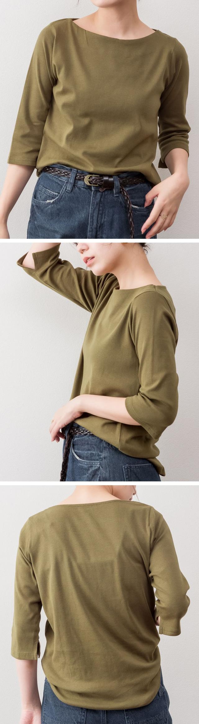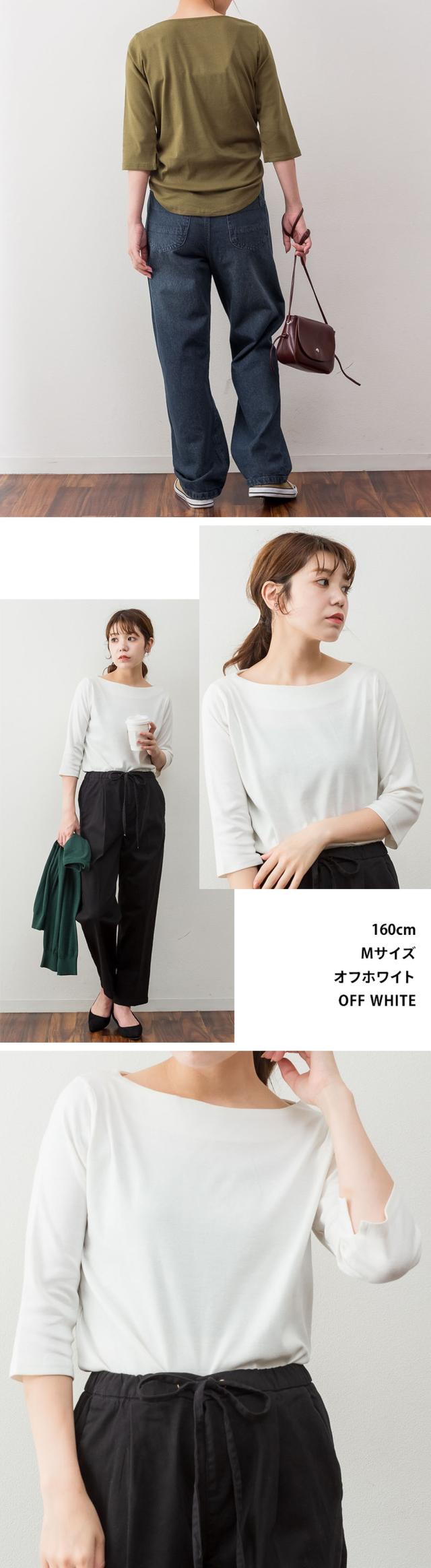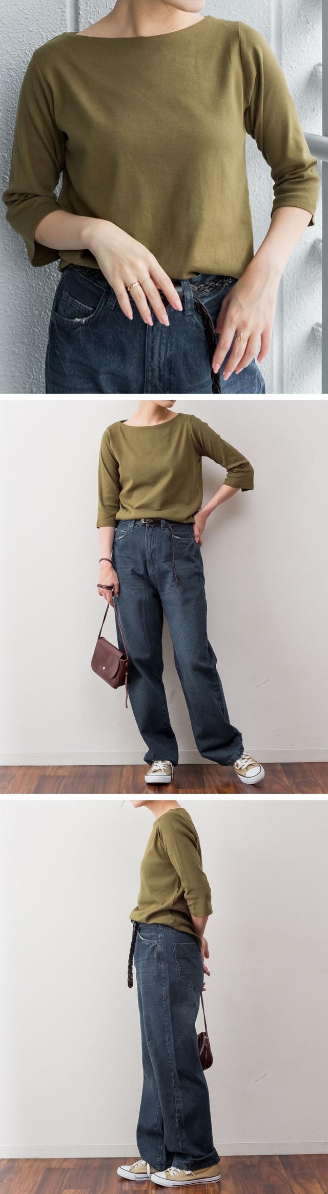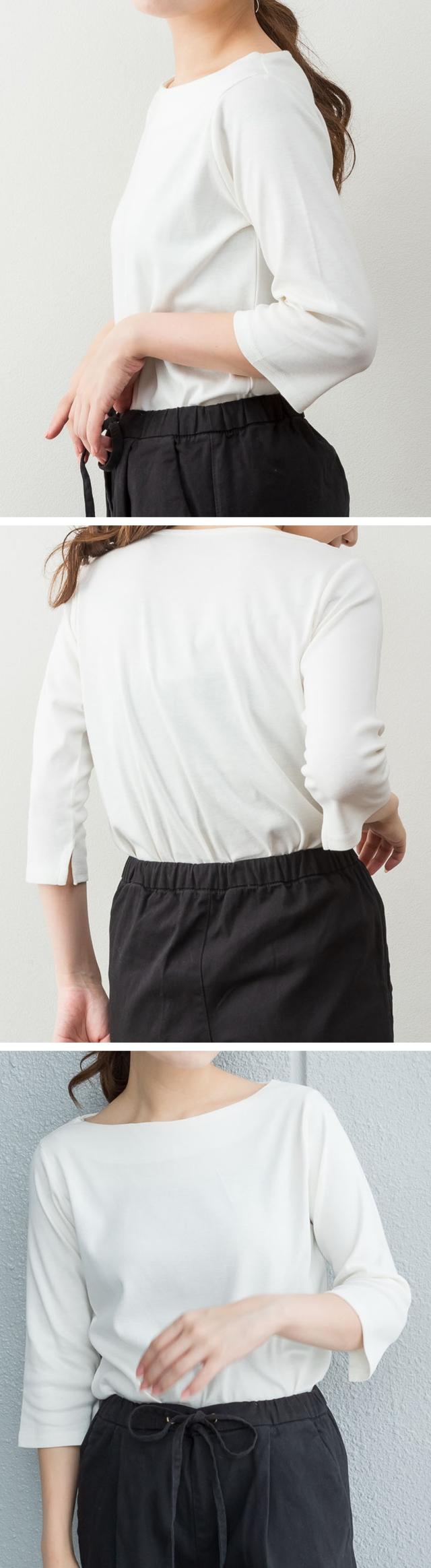 上品シルエットで大人のこなれ感を。ボートネック七分袖Tシャツ