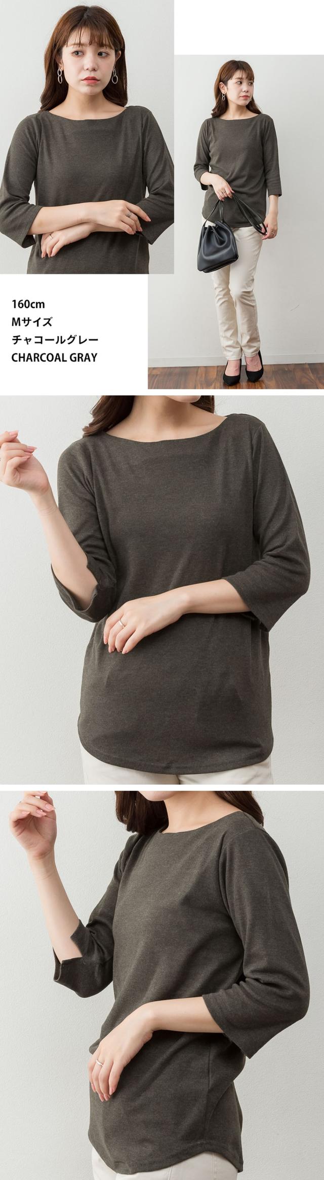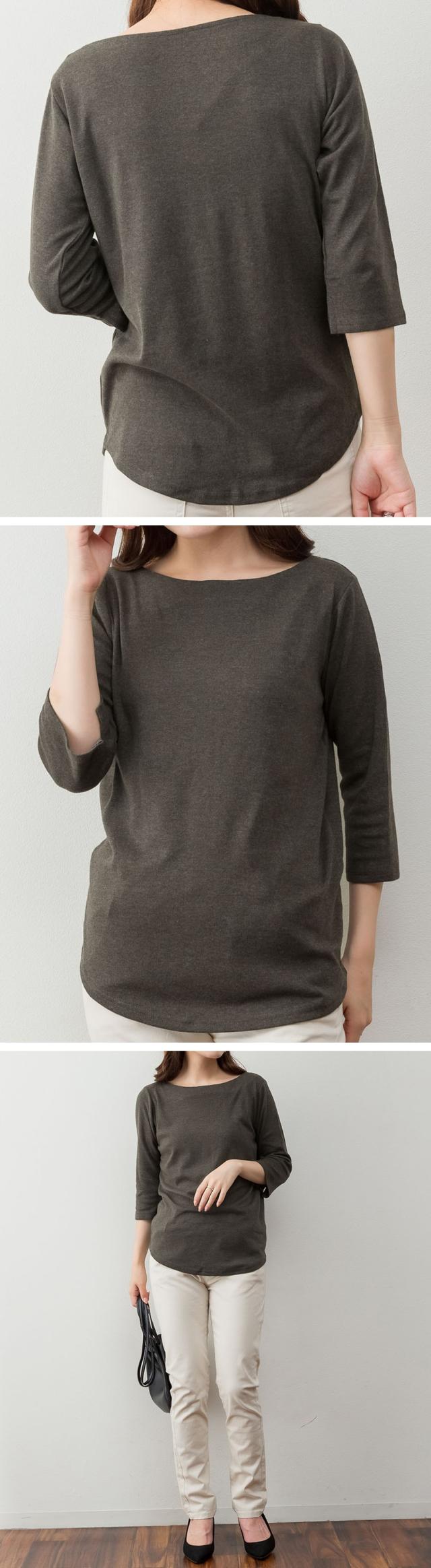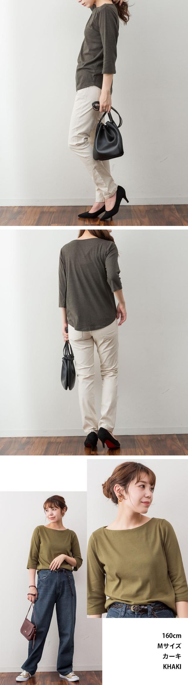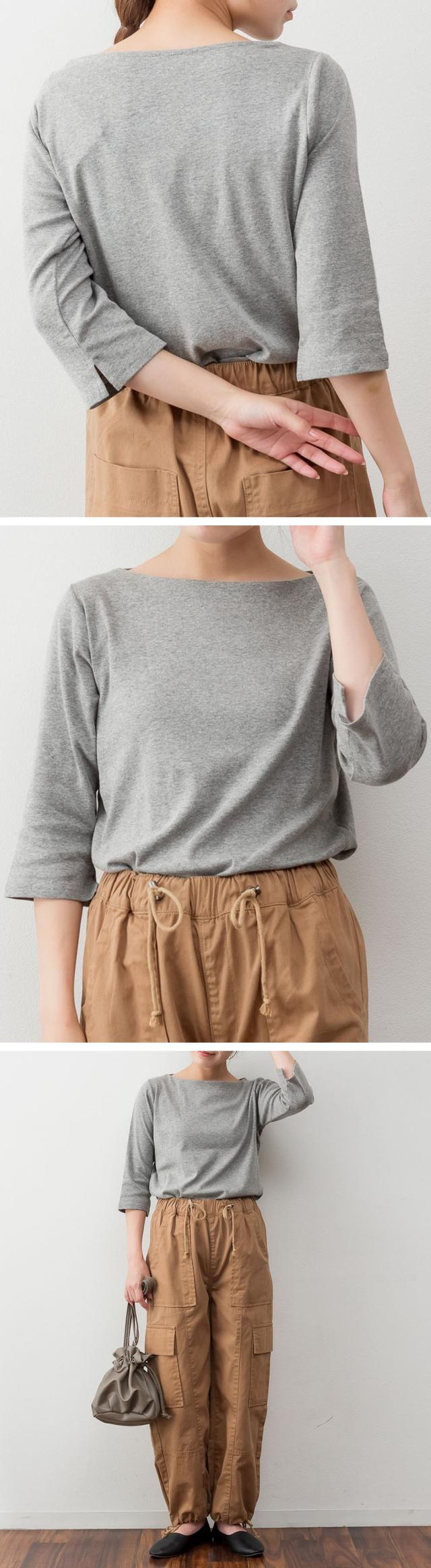 上品シルエットで大人のこなれ感を。ボートネック七分袖Tシャツ