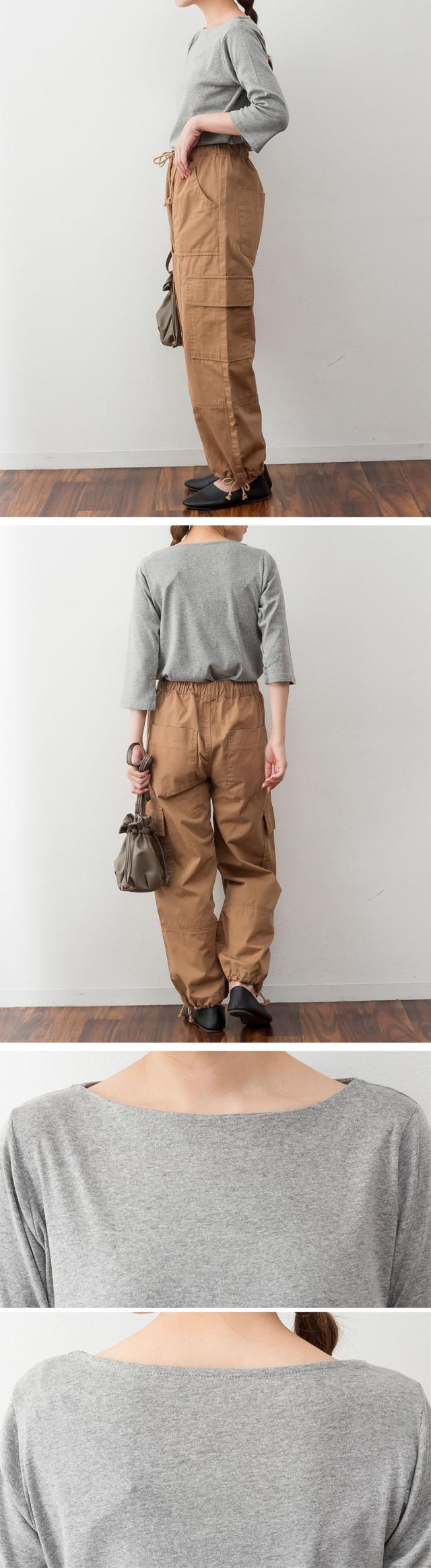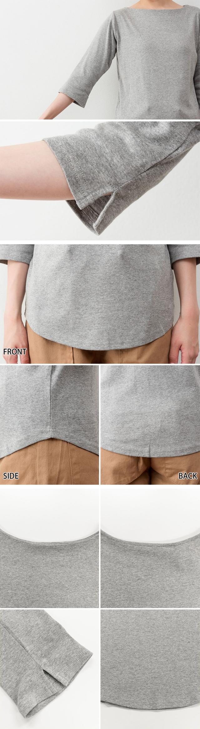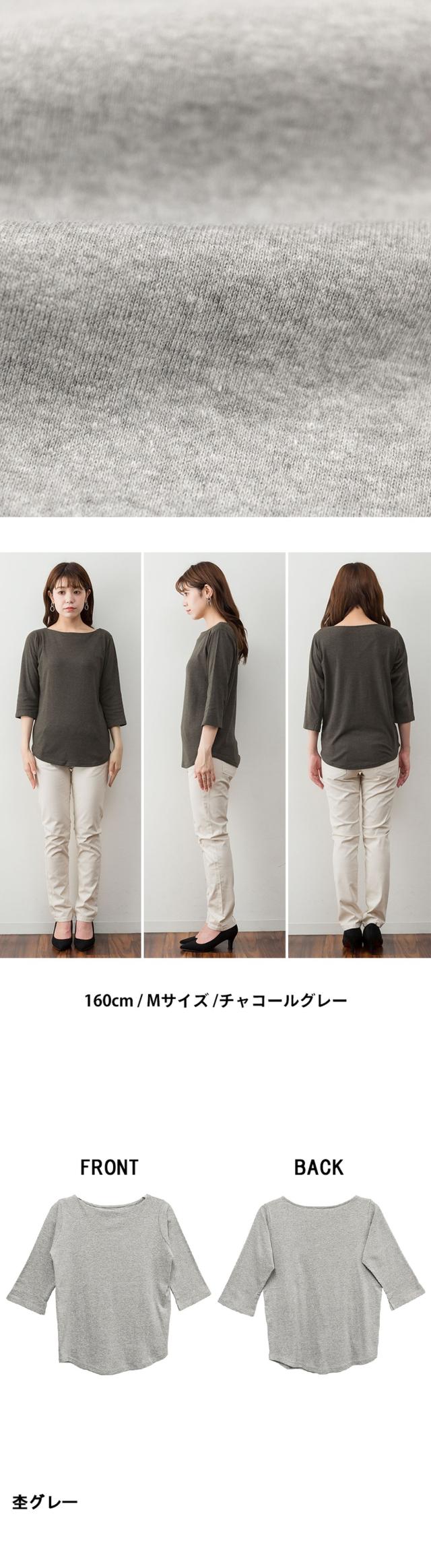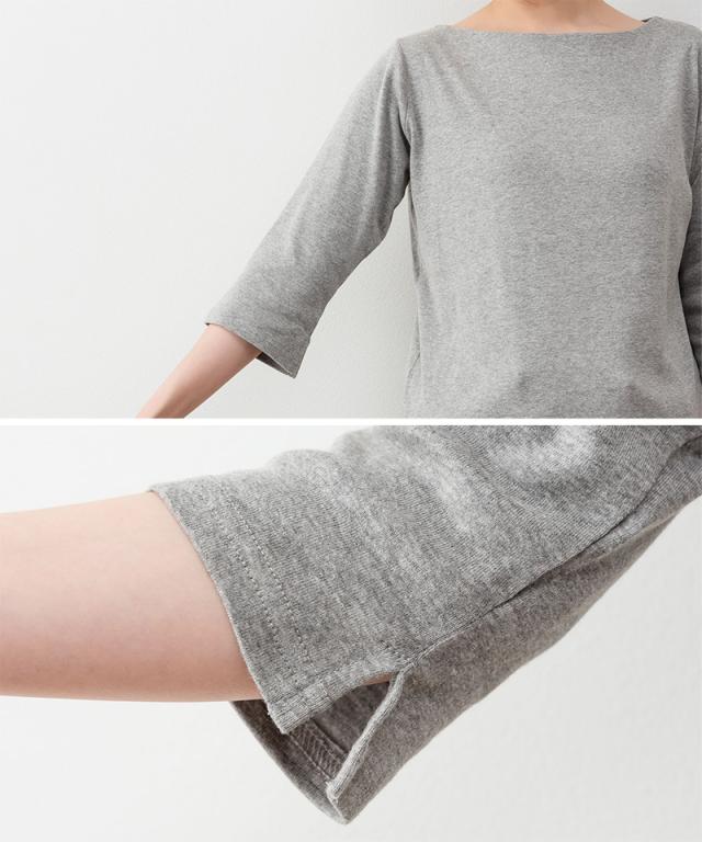 上品シルエットで大人のこなれ感を。ボートネック七分袖Tシャツ