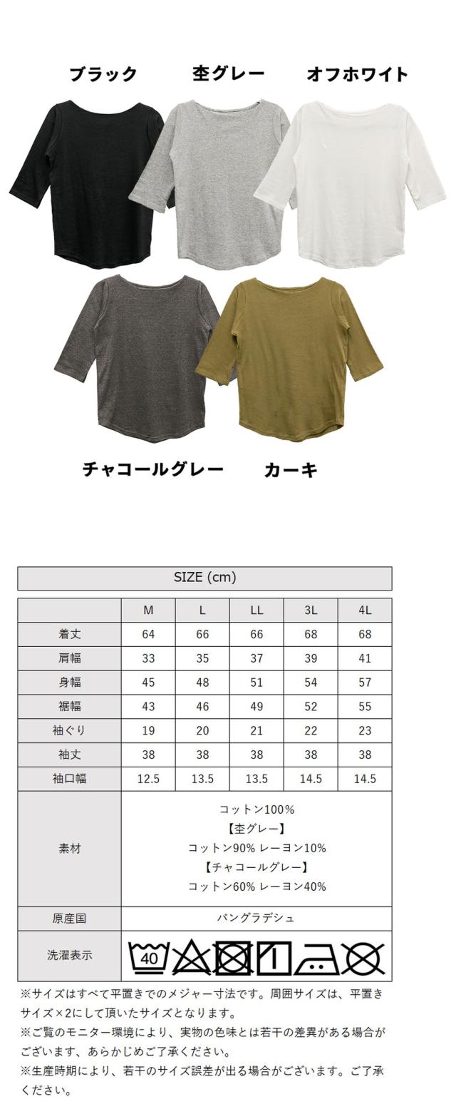 【月初SALE】冬新作 大きいサイズ レディース カットソー ロンt ボートネック 七分袖 トップス コットン カジュアル インナー レディース 大きいサイズ M L LL 3L 4L 黒 白 グレー カーキ