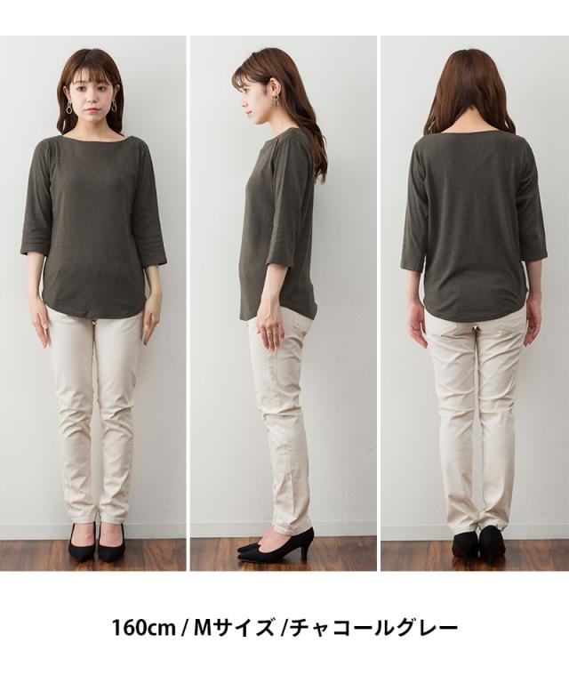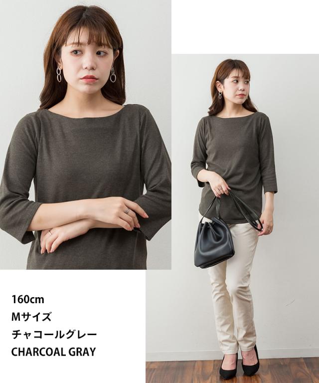 | 上品シルエットで大人のこなれ感を。ボートネック七分袖Tシャツ デコルテを美しく魅せるネックラインと、程よいフィット感が大人の上品さを引き立てます。 カジュアルにもキレイめにも馴染む万能な一枚。 シンプルなデザインだからこそ、どんなボトムスとも好相性。 デニムやワイドパンツと合わせれば、こなれた大人カジュアルに。 タイトスカートやテーパードパンツと合わせれば、上品で落ち着いたスタイルに ジャケットのインナーとしても使いやすく、シーズン問わず活躍するアイテムです。 露出を抑えながらも抜け感をプラスし、きれいめな印象に。ブレスレットや時計が見えるので、小物をアクセントにしやすいのも◎ですね! 長袖より軽やかで、家事や作業の邪魔にならず快適。春や秋は一枚でさらっと、冬はインナーとしても活躍 |