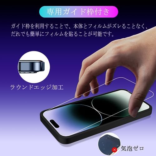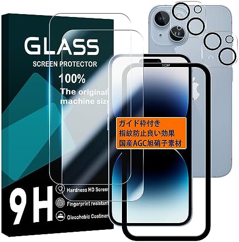 iPhone 15 フィルム ガイド枠付き 【2+2枚セット 国産旭硝子素材 高品質】 ガラスフイルム 【2枚】+ レンズフィルム 【2枚】 液晶保護フィルム 強化ガラス さらさら ガラス レンズ保護フィルム ケース 硬度9H 耐衝撃 飛散防止 超薄 厚さ0.26mm 気泡ゼロ 3D To...