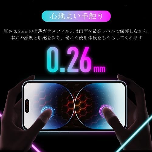 【極薄・超クリア・感度が高い】 アイフォン15 保護フィルムは、通常の液晶保護フィルムよりも高級なガラスを採用して作られており、高精細で透明な保護フィルムが最高な解像度があることを確保し、透明度も高くて99%に達し、高透明度で高精細な見る体験を現実しました。