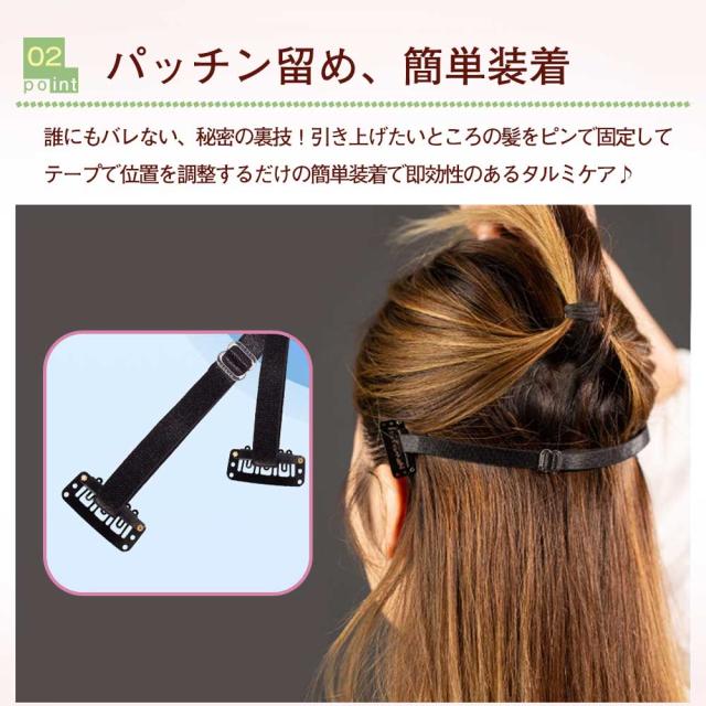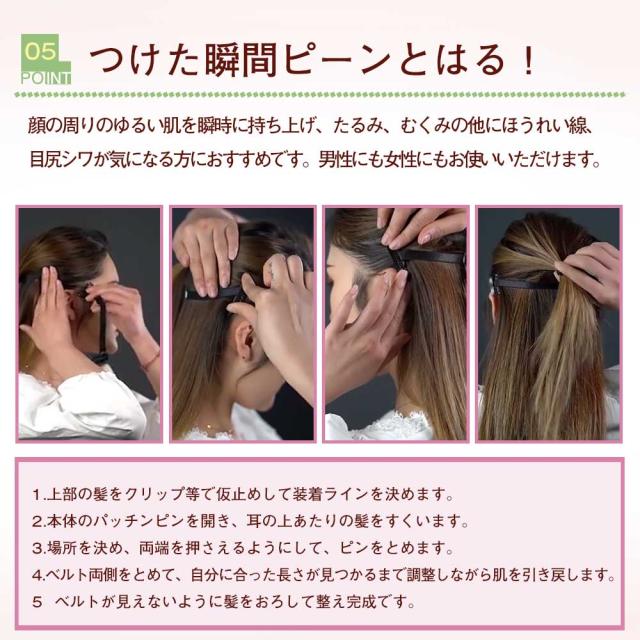 ●誰にもバレない、秘密の裏技!引き上げたいところの髪をピンで固定してテープで位置を調整するだけの簡単装着で即効性のあるタルミケア♪