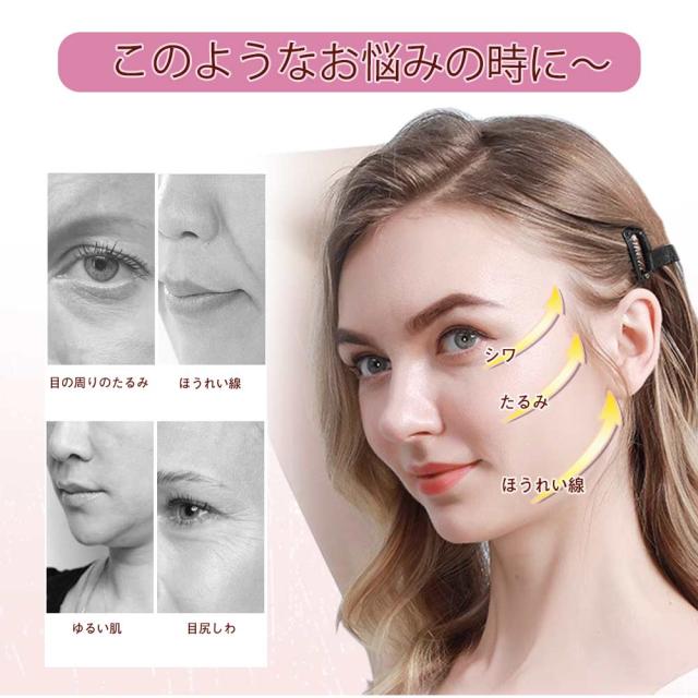 ●顔の周りのゆるい肌を瞬時に持ち上げ、ほうれい線、目尻シワが気になる方におすすめです。男性にも女性にもお使いいただけます。