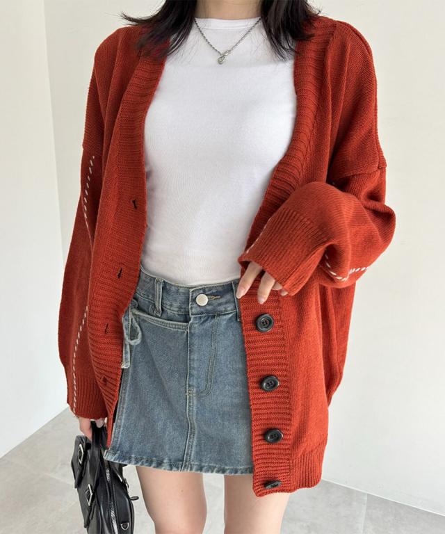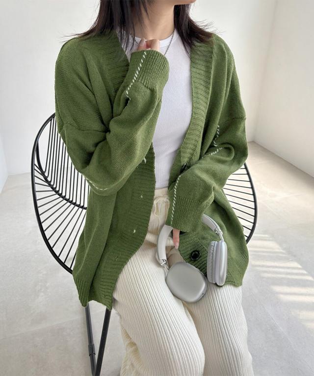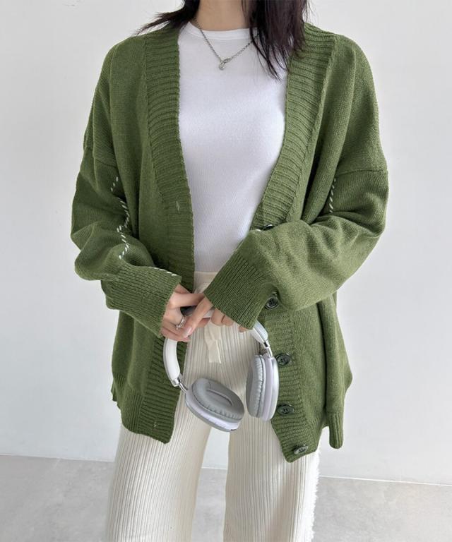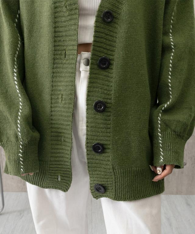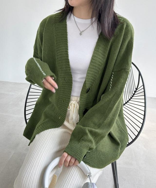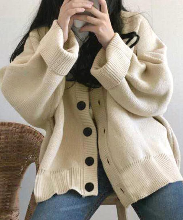 お洒落女子に格上げしてくれるVネックカーディガン。