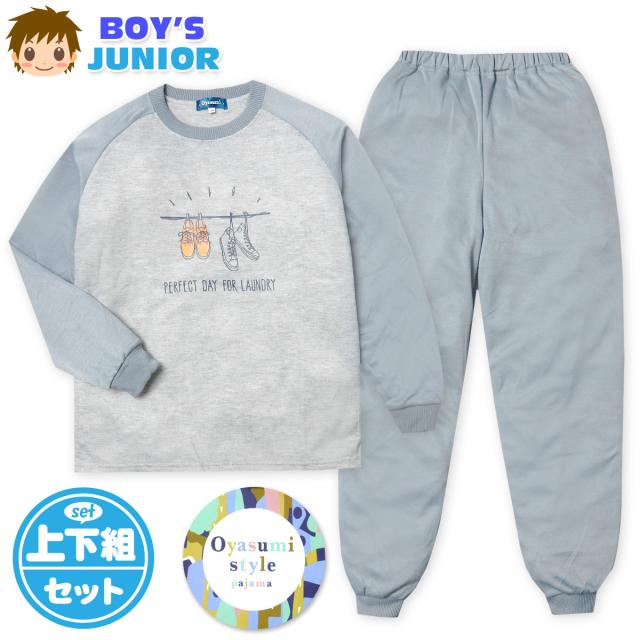 【送料無料】男児 ジュニア 長袖 パジャマ ダンボールニット 上下組 スウェット 丸首 バックポケット my-0081a-gy【メール便対応】