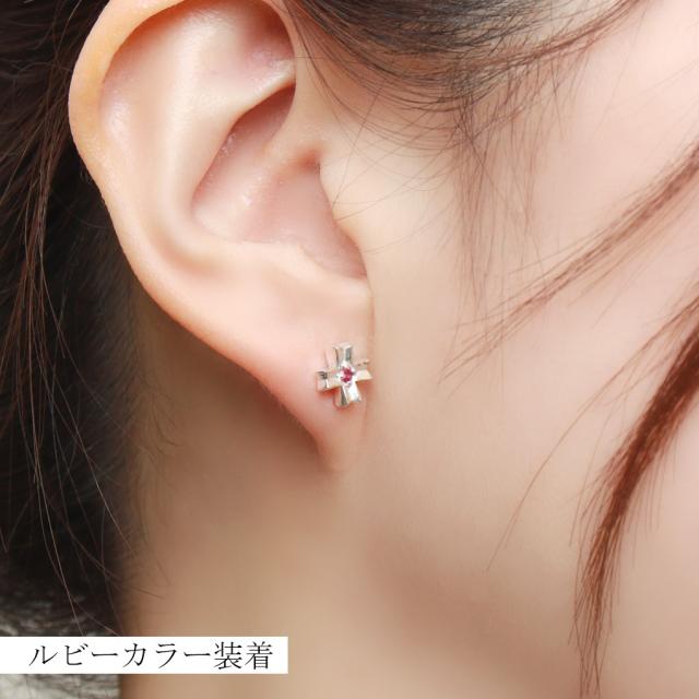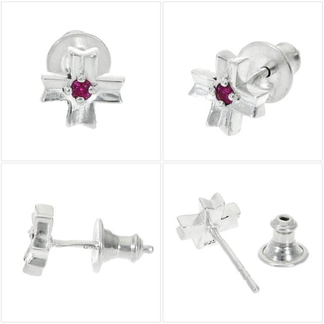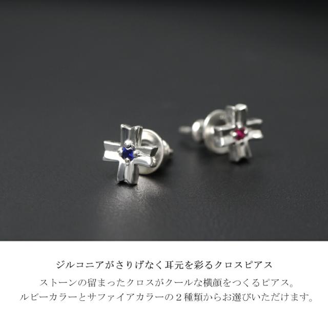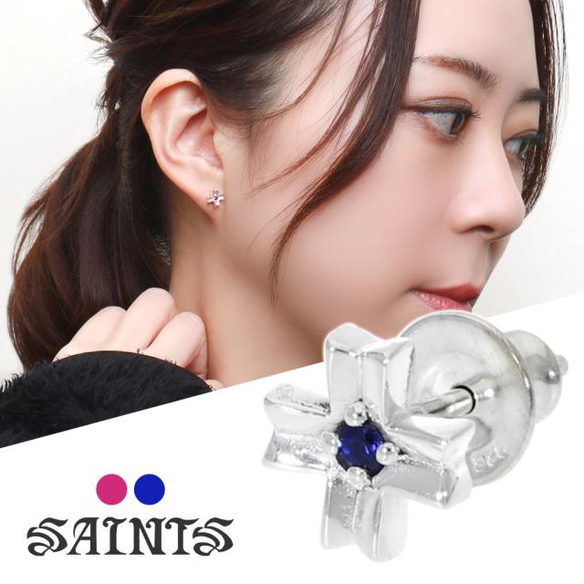 SAINTS セインツ クロス 十字架 ピアス 1P 片耳用 シルバー925 ジルコニア ルビー サファイア シルバーアクセサリー 銀 シルバー 定番 大人 きれいめ
