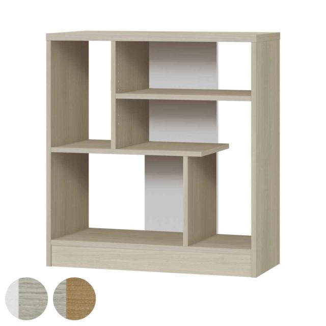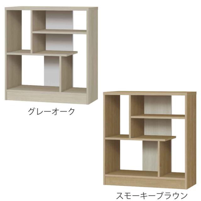 オープンシェルフ 北欧モダン アシンメトリーデザイン 約幅80cm ( 本棚 ラック 棚 シェルフ 収納 家具 A4対応 日本製 飾り棚 可動棚 ツートンカラー A4サイズ グレーオーク スモーキーブラウン シンプル )