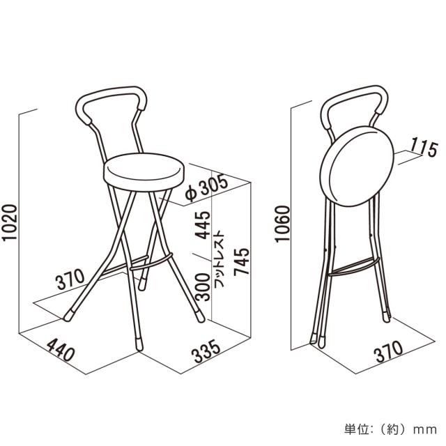 | サイズ | 約 幅37×奥行44×高さ102(cm) 座面高:約 74.5(cm) 折りたたみ時:幅37×奥行11.5×高さ110(cm) |