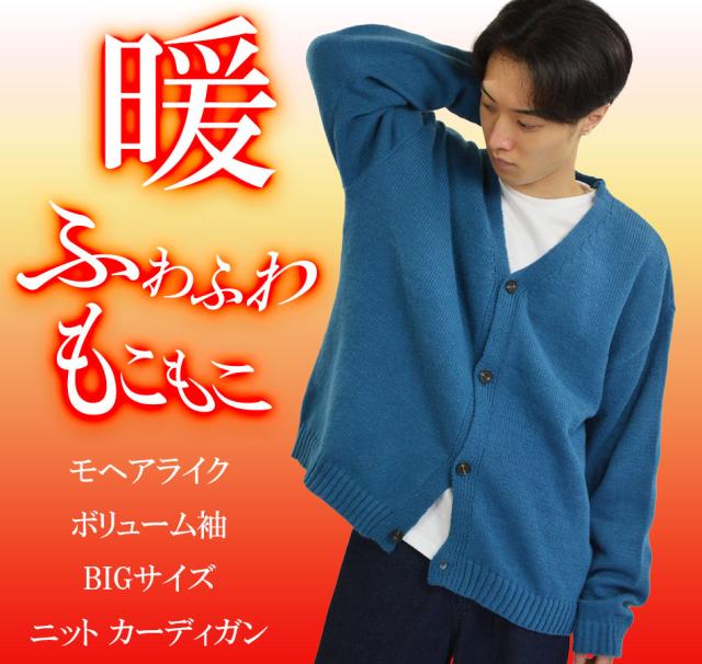 モヘアライク ボリューム袖 BIGサイズ ニットカーディガン