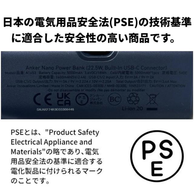 Ankerグループのすべての対象製品(モバイルバッテリー・急速充電器・イヤホン等)は、PSEマークの取得に必要な技術基準に適合しております。