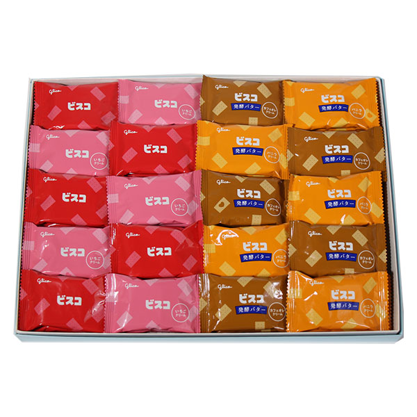 グリコ ビスコ 2枚入り ミルク×10コ、いちご×10コ、