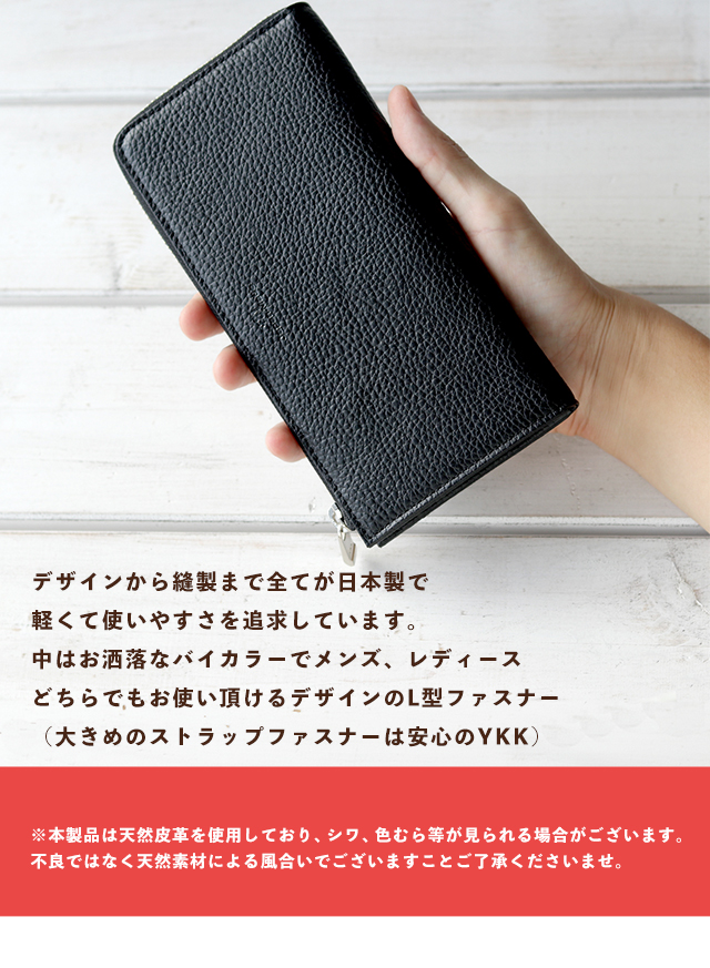 プラスエイトワン 長財布 財布 メンズ レディース 革 レザーウォレット 小銭入れ 日本製 +81 ◆ PULUS EIGHT ONE (+81)は、日本の品質の良さをもっと多くの人に知っていただくために誕生しました。日本製に拘り熟練の職人さんが一つ一つ丁寧に製造しています。デザインから製造全ての工程を日本で行っていますので、Made In Japan のクオリティをお楽しみ下さい。 日本タンナーズ協会 姫路レザーを惜しみなく使用し、中までお同じ姫路レザーを施しました。デザインから縫製まで全てが日本製で軽くて使いやすさを追求しています。中はお洒落なバイカラーでメンズ、レディースどちらでもお使い頂けるデザインのL型ファスナー。(大きめのストラップファスナーは安心のYKK) E81H-L-BK E81H-L-BE E81H-L-KA E81H-L-NV E81H-L-OR