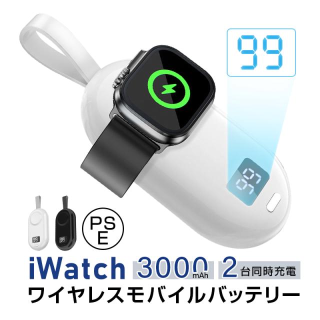 iWatch充電器 ワイヤレス磁気充電器 3000mAh スマホ充電器 iPhone17/16/15充電 For Apple Watch ultra9/8/7/6/SE/5/4/3/2/1全シリーズに対応 軽量 小型 【PL保険加入済み製品・安心】