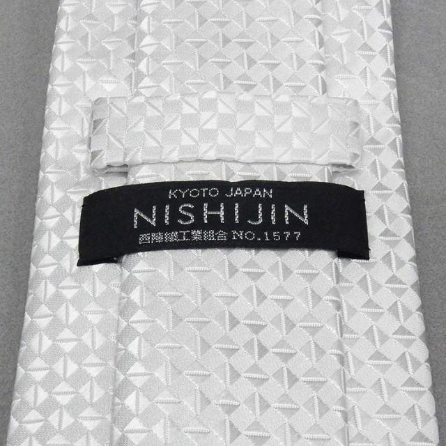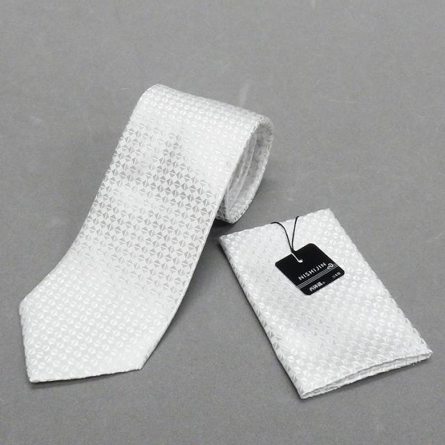 西陣織 フォーマルタイ チーフ付◇白銀◇かわりバスケット柄◆シルク100%◇日本製◆礼装◆結婚式・披露宴 メール便可 njc59-SV