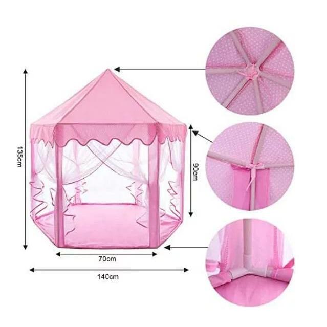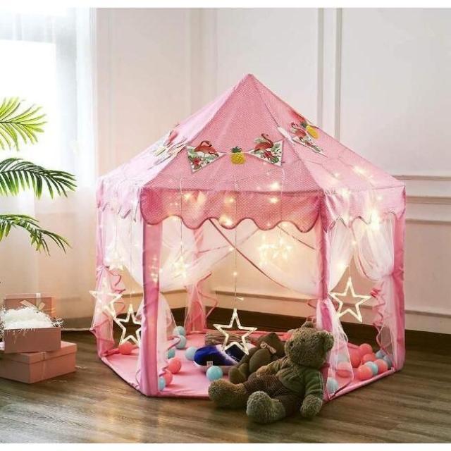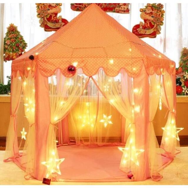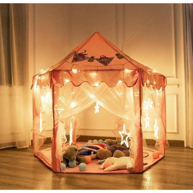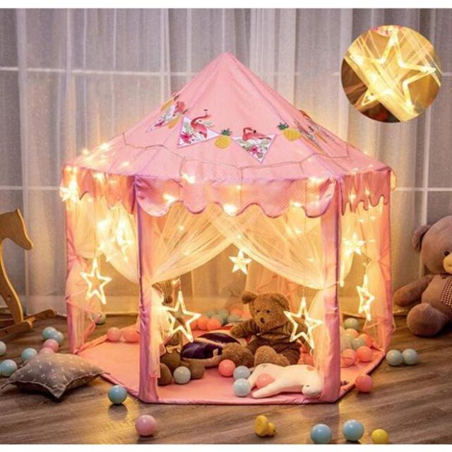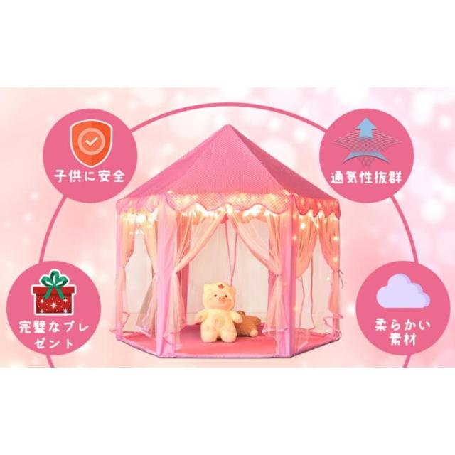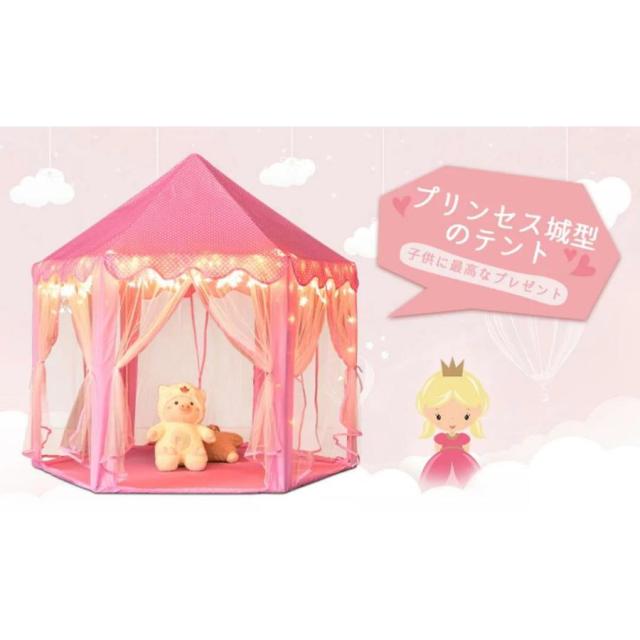キッズテント 女の子のおもちゃハウス 可愛い子供用テントハウス プリンセスの城型 折り畳み式 キラキラLEDスターライト付き 知育玩具 秘密基地 室内遊具