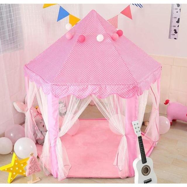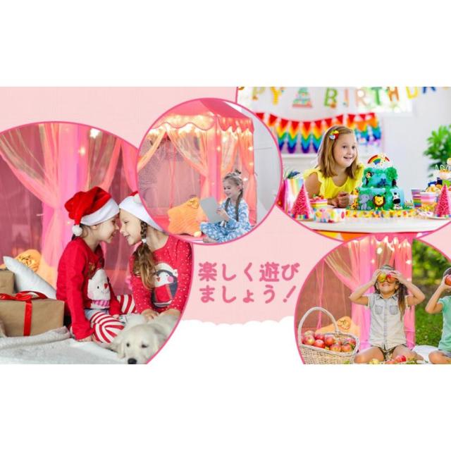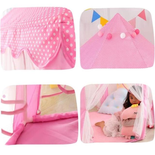 【人気なギフト】ピンクのキャッスルテントはすべてのお姫様の夢の住所で、娘と孫などの小さな女の子にとって絶対に完璧なギフトです。綺麗なプリンセス気分のカーテンが付き、まるで彼たちの自分だけのお城みたい、私的な空間を与えます。子供達はこの中に遊びたり、本を読んたり、休憩したり、豊かな想像力が促進でき、創造力が強化できます。