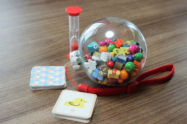 ボールをしゃかしゃかふって、カラフルな木のコマを見つけよう!