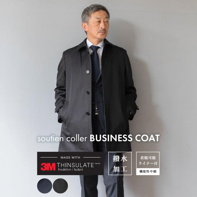 ステンカラーコート メンズ コート ビジネス 秋 冬 春 シンサレート 機能性中綿 フェイクダウン 撥水加工 中綿ダウン ライナー 取り外し可能 無地 大きいサイズ BB体 AB体 S M L LL 3L バルカラーコート ステンカラー ビジネスコート 黒 紺 シンプル ボンディング